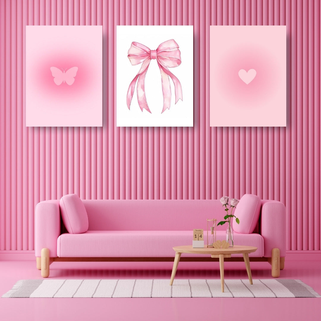 Pink Aesthetic Set Of 3 Wall Art for Home Decor