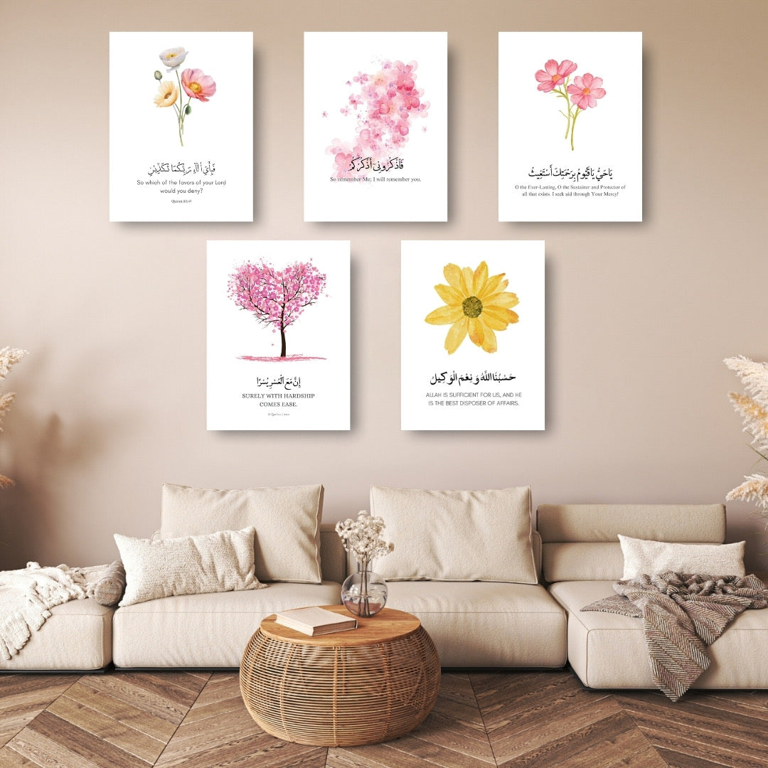 Minimalist Islamic Floral Wall Art Set set of 5